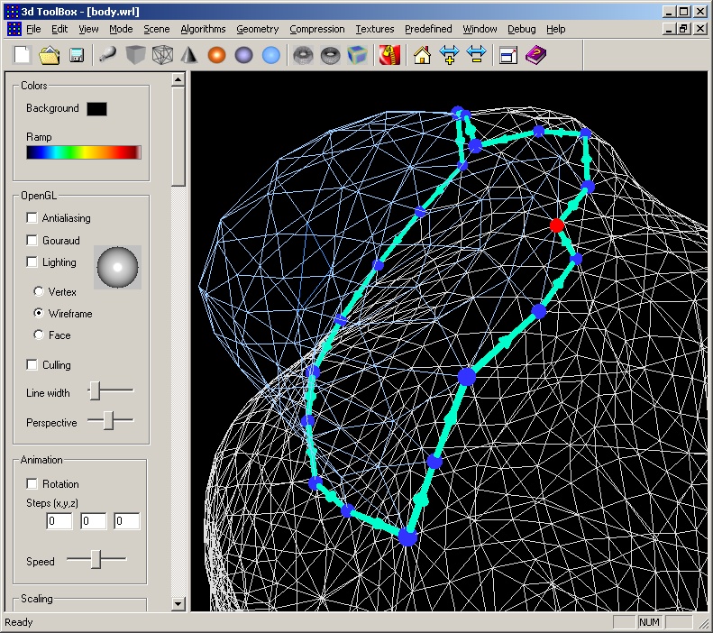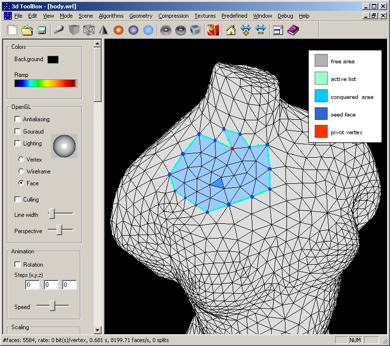 mesh, in wireframe mode. The (oriented) active list is colored in light